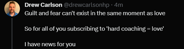 If you didn’t click on the tweet to read the whole thing. The title is “Hard Coaching=Love”