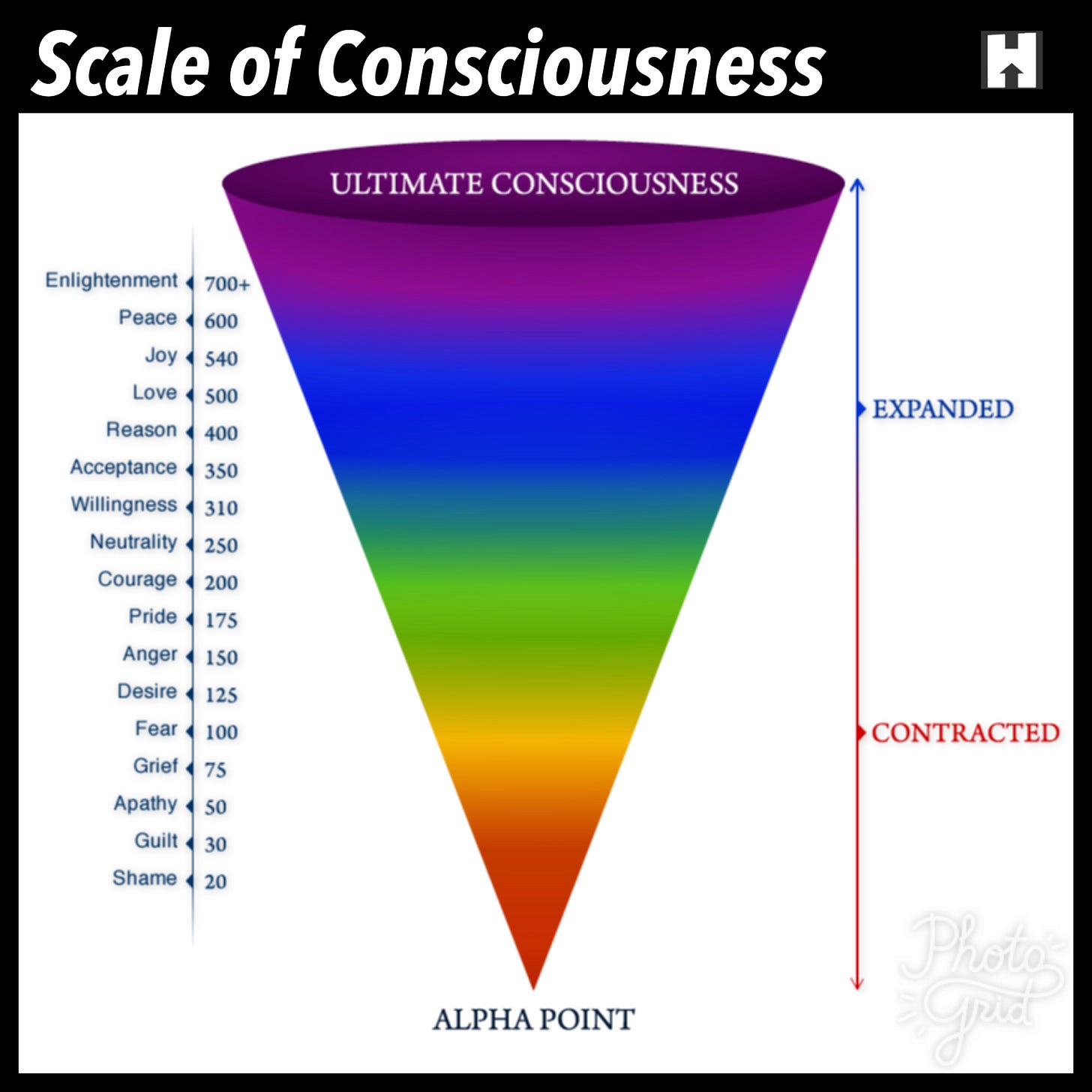 Love is up there with “joy.” Not listed but also up in the expanded states of consciousness: